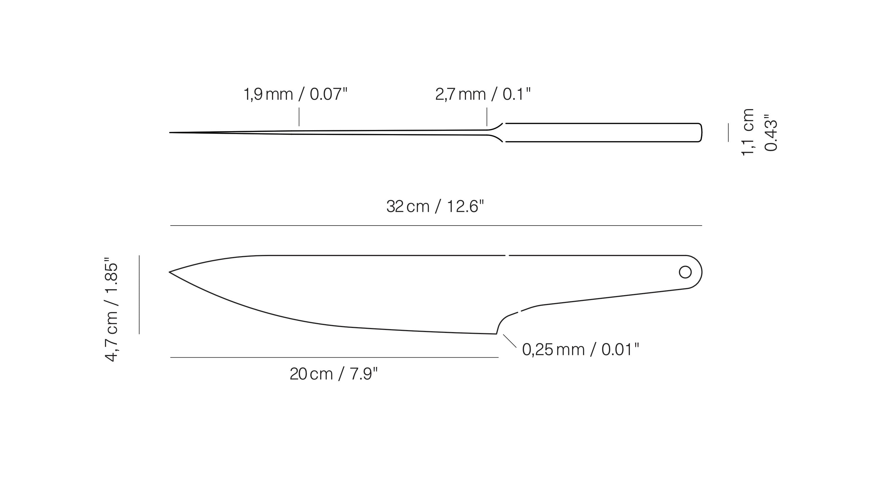 Looking at how professional chefs hold their knives we developed the open handle: a wrench inspired design that invites you to slide your thumb onto the blade and grab it right at the balancing point. This adds stability and a firm grip for all cooking – everyday.