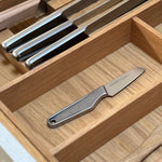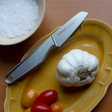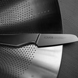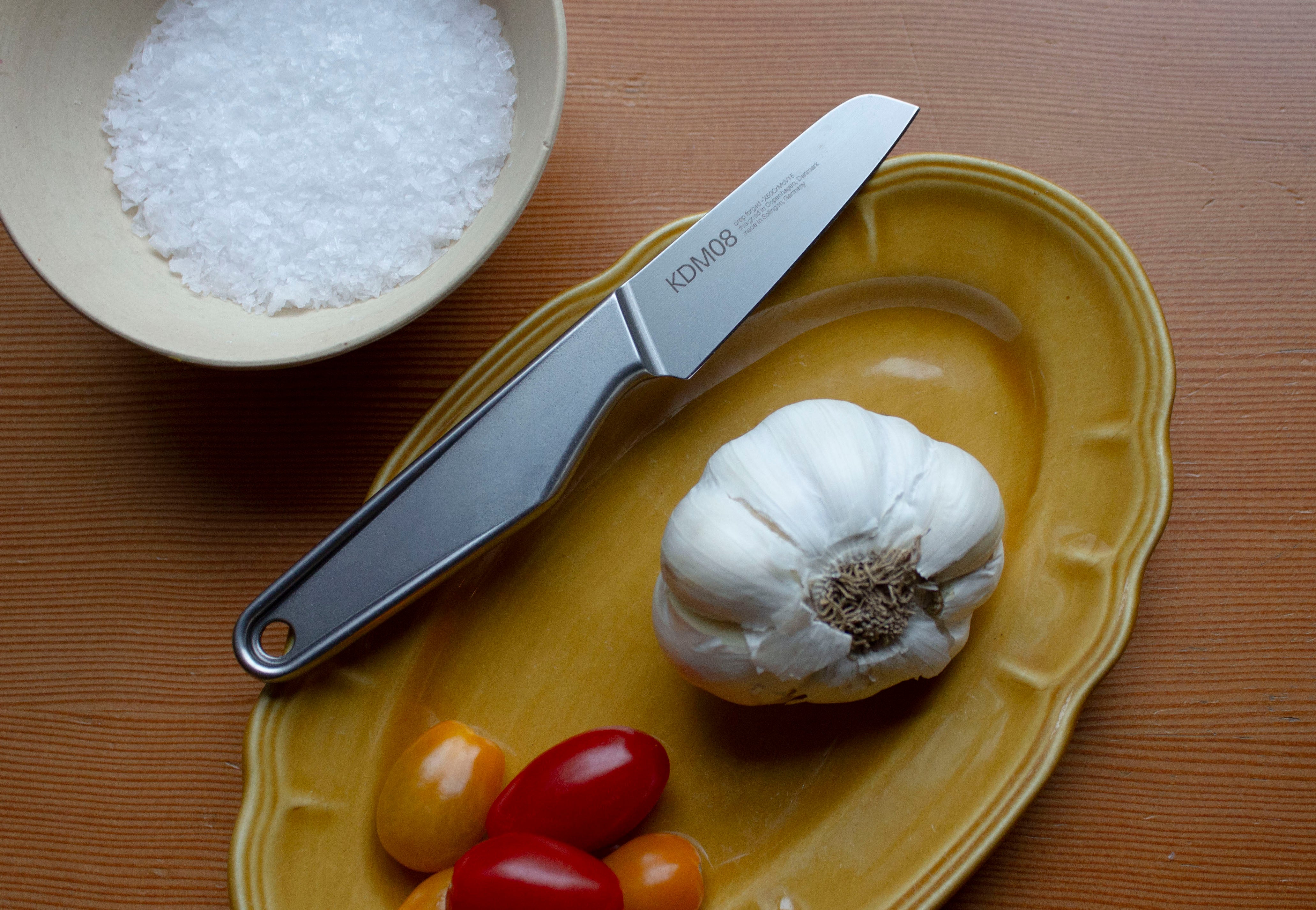 A Kudamono knife is the traditional Japanese small kitchen knife, "Kudamono" means "fruit" in Japanese, so a Kudamono knife is a small, sharp knife used for peeling and cutting fruits and vegetables. It is essentially a Japanese paring knife, designed for precise work with fruits and other produce.