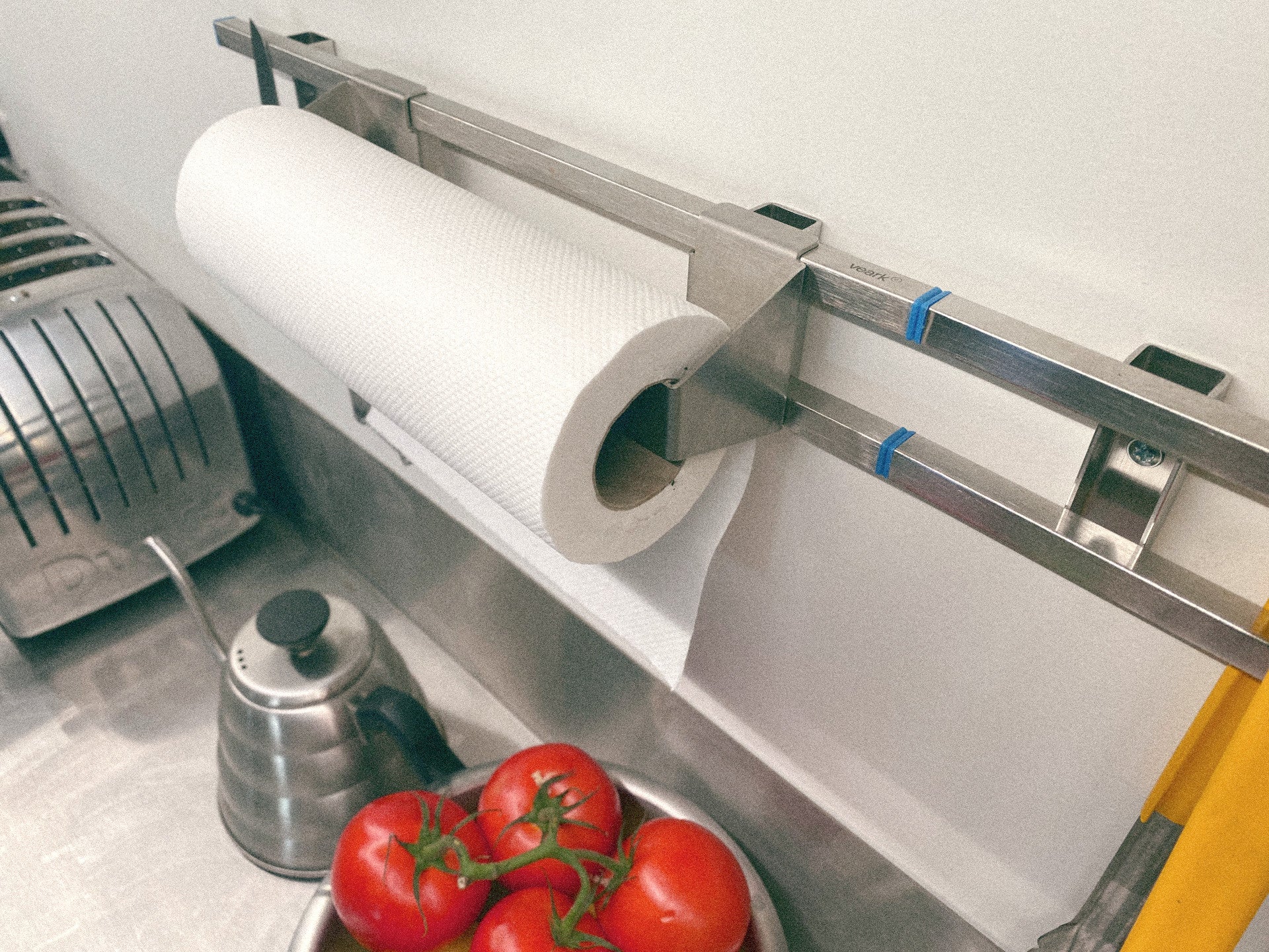 The parts can sit anywhere on your Veark modular rack system to place your kitchen roll where ever you need it on your kitchen wall.
