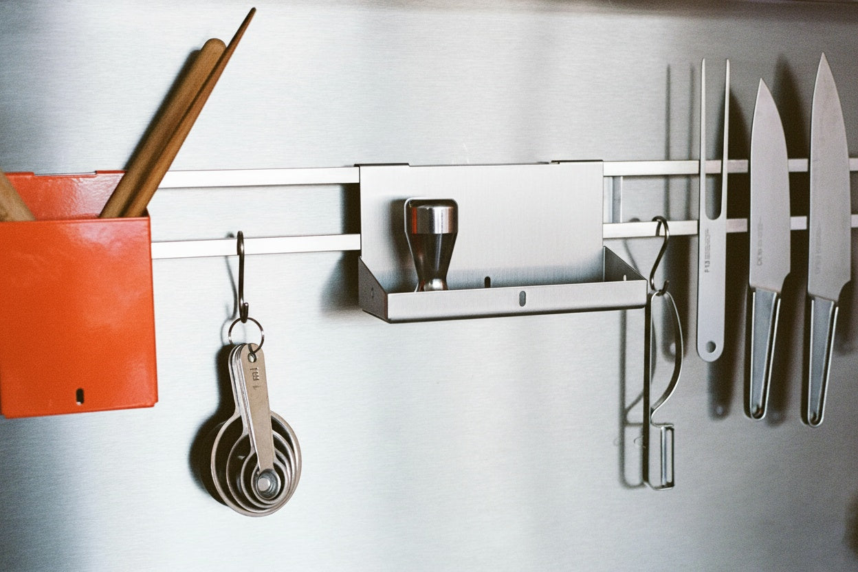 Inspired by professional kitchen design, the Veark rack system (RS) is a way to keep your essential kitchen tools handy at all times.
