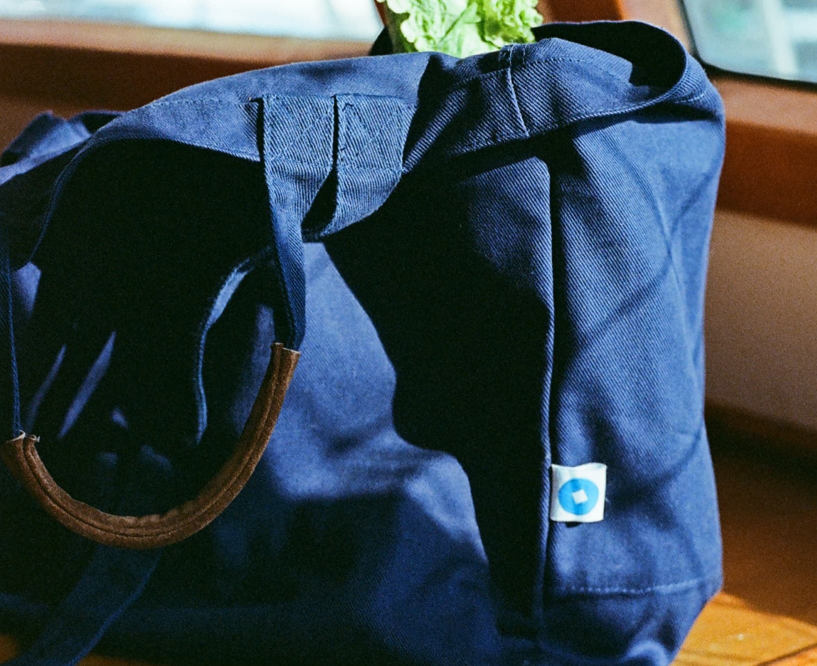 Color: Navy Blue - brown handle