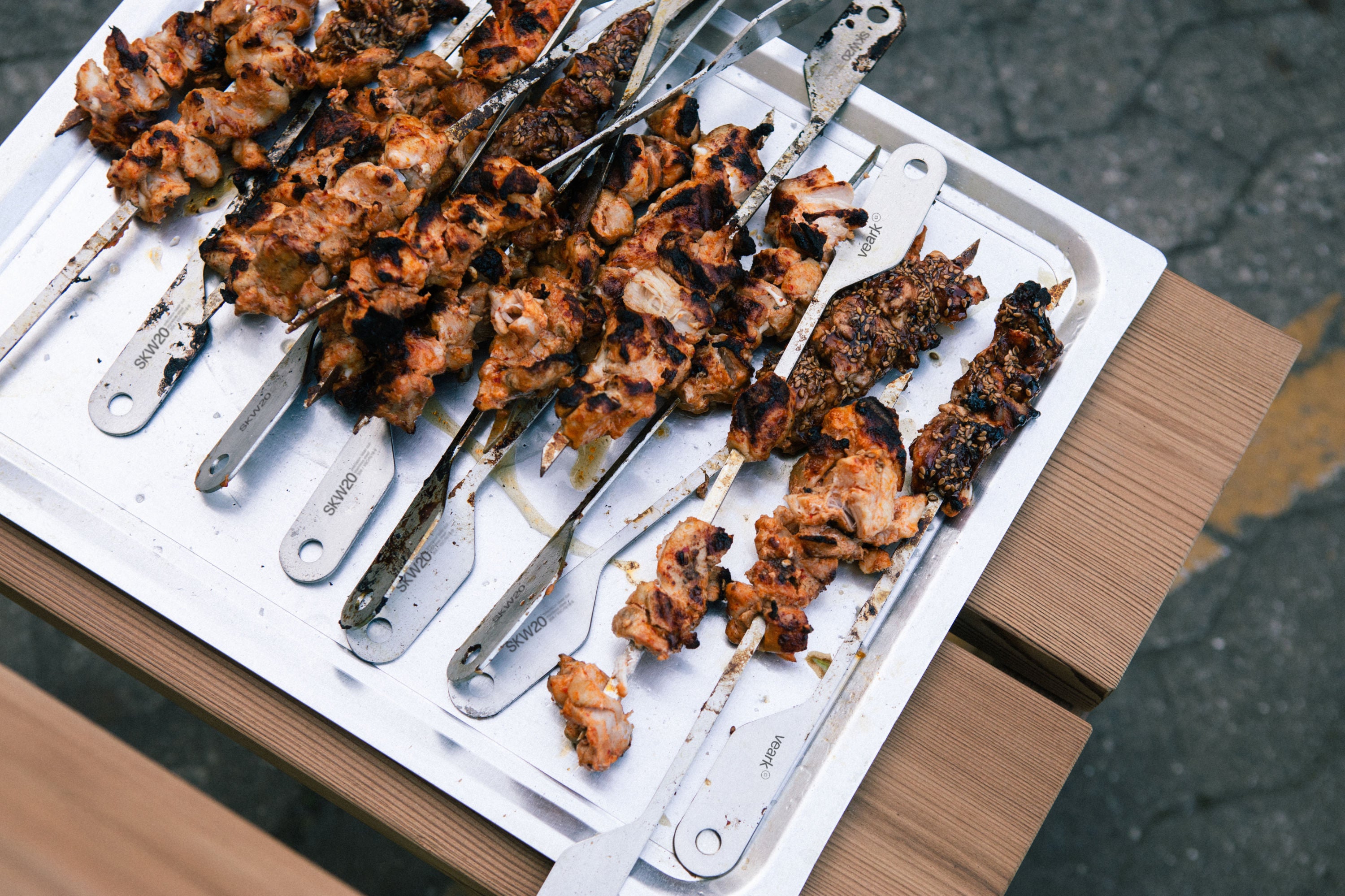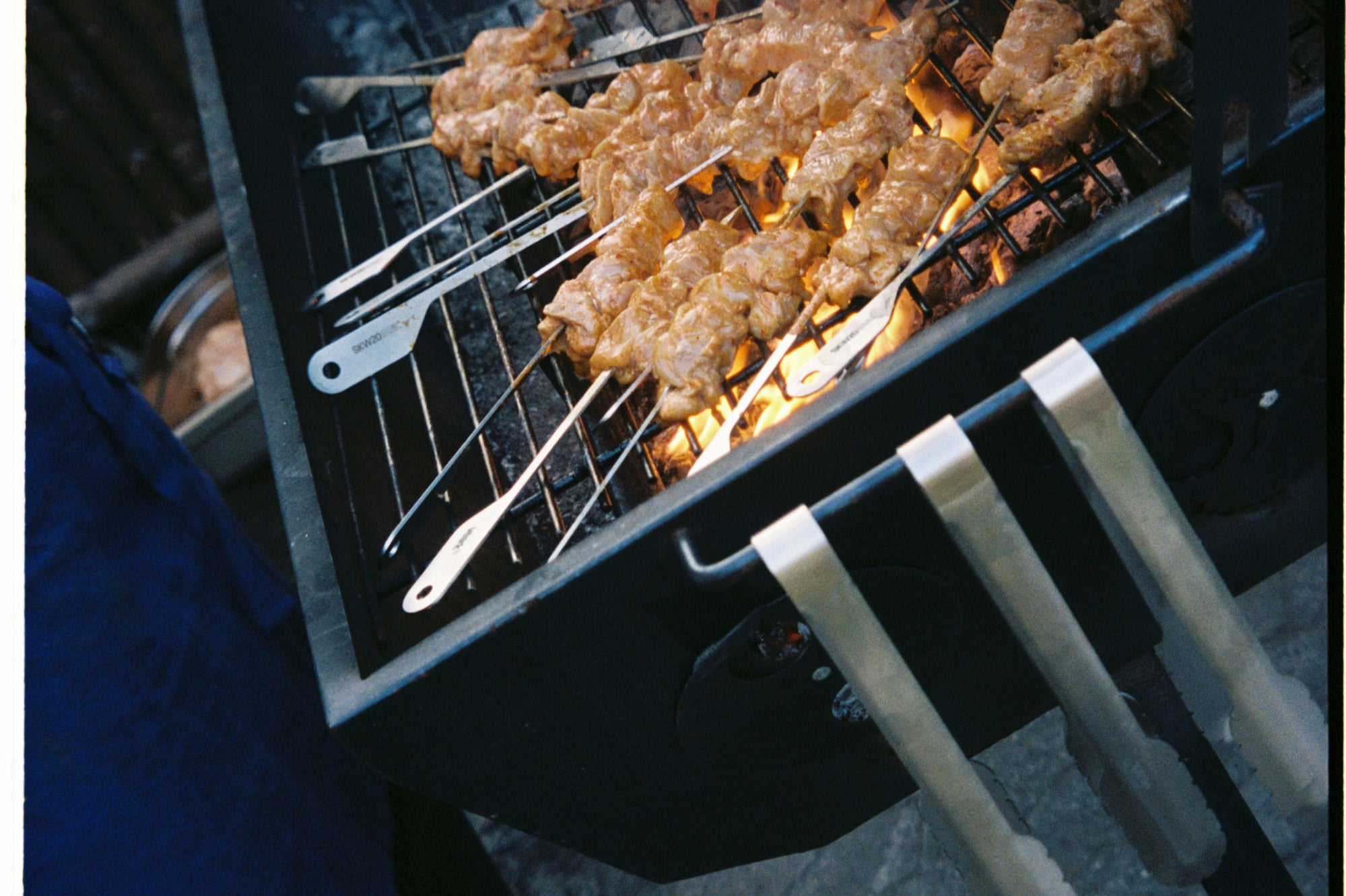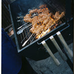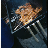 The flat steel design ensures to heat up and help cook the food from the inside also. Further more the flat design prevents food from accidentally turning vs on round skewers, while the sharpend tip makes it a breeze to poke through meat and vegetables.